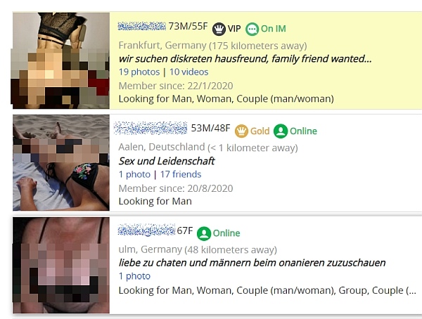 In Deutschland finden sich 2,7 Mio Profile, ein Großteil sind männliche Nutzer und Paare auf der Suche nach einem Sexpartner zum Swingen. Monatlich aktiv sind rund 250.000 aus Deutschland.