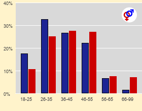 Bei den Jüngeren sind etwas mehr Männer aktiv, bei den älteren etwas mehr Frauen. Ein Phänomen, das sich in allen Datingportalen beobachten lässt!