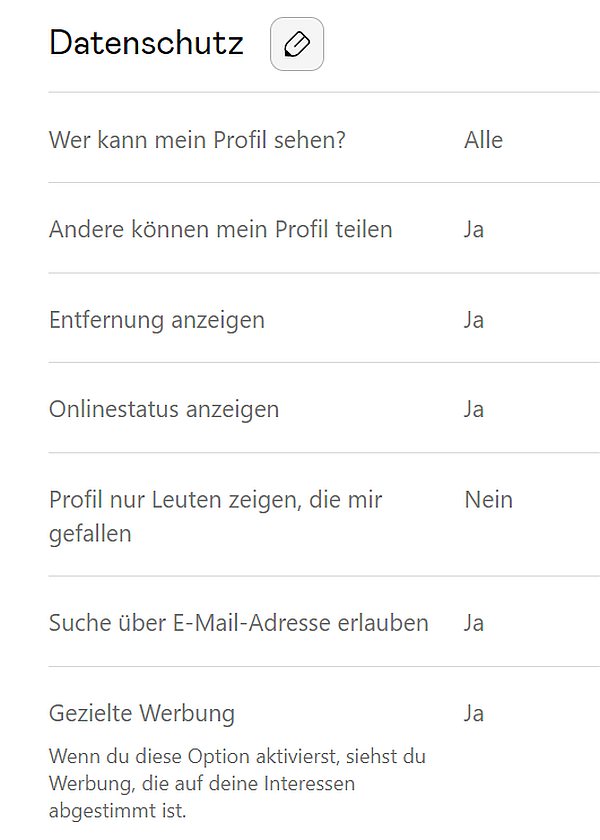 Zudem bekommt der Anbieter einen Pluspunkt mit Sternchen für seine Datenschutz-Einstellungen. Hier kann jedes Badoo-Mitglied selbst bestimmen, welche Informationen es teilen will.