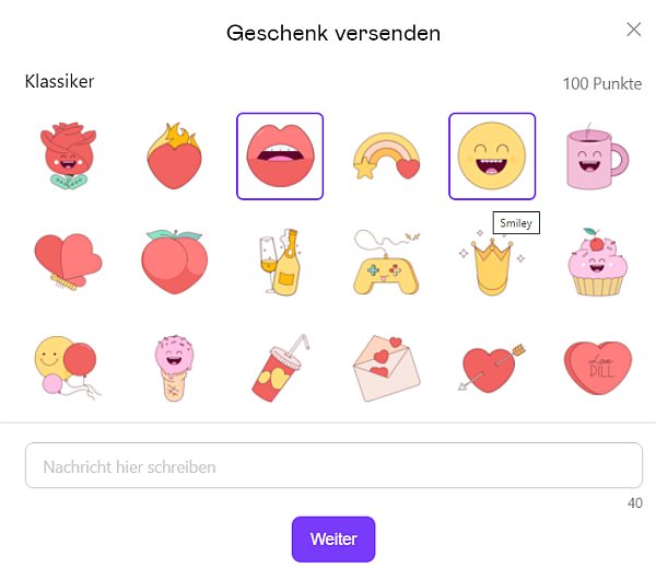 Sie können Geschenke für andere Benutzer kaufen. Mit Credits können Sie anderen Benutzern Emojis senden, um die Aufmerksamkeit auf sich zu lenken.
