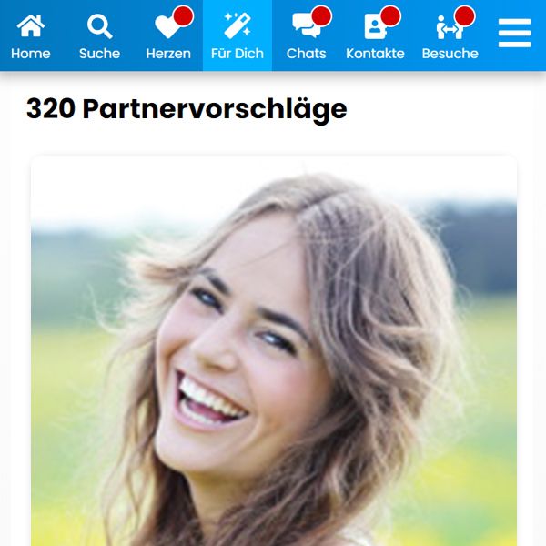 Auf Ihrer Startseite bei Finya werden Ihnen sofort neue Mitglieder vorgestellt. Ein zweiter Block zeigt attraktive Nutzer, die viele Herzen erhalten haben. Wenn Sie Ihr Profil gut ausgefüllt haben, sehen Sie nach dem Einloggen bei Finya auch Mitglieder mit gleichen Interessen.