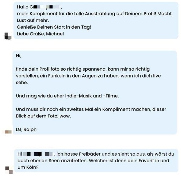 Hier eine kleine Auswahl erster Nachrichten, die unsere weiblichen Tester erhielten.