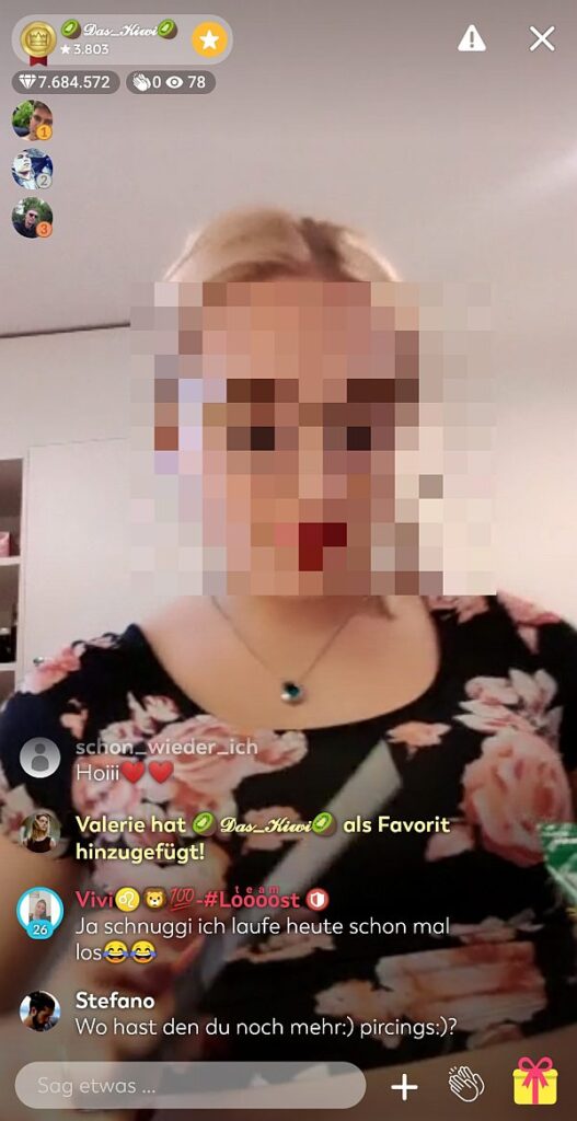 Zuschauer eines Live-Streams bei Lovoo können Kommentare hinterlassen oder dem Streamer Geschenke schicken. FunFact: Geschenke wie bspw. die Diamanten können Nutzer in bares Geld umtauschen.
