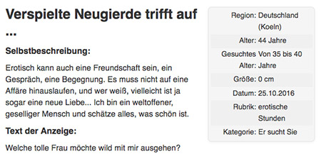 Dann setzen Sie wahlweise auch noch ein aktuelles Inserat auf, in dem die Partnersuche auf Rubensfan genauer beschreiben werden kann, zum Beispiel: