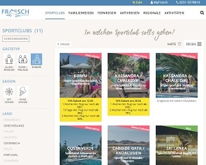 Bei Frosch-Sportreisen gibt es mittlerweile knapp an die 30 Singlereisen. Diese lassen sich grob in drei Angebote unterteilen: Single-Aktivreisen, Single-Sportclub-Angebote und Sportreisen. Die Sportclubs liegen in Ländern, wie Griechenland, Portugal oder Kroatien und sind natürlich vor allem im Sommer absolute Hotspots zum Flirten.